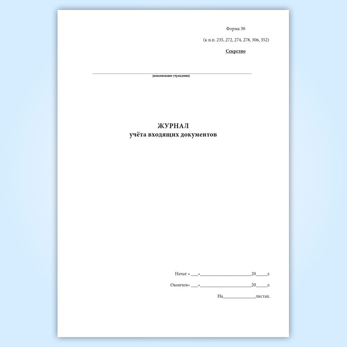 Журнал учета входящих документов (форма № 30) в Магнитогорске купить