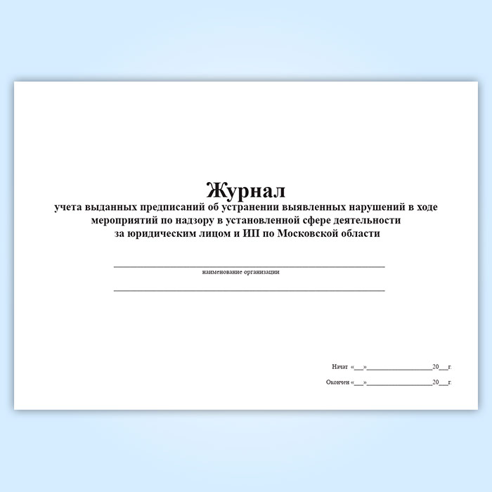 Журнал учета выданных предписаний об устранении выявленных нарушений в ходе мероприятий по надзору в установленной сфере деятельности за юридическим лицом и ИП по Московской области в Магнитогорске купить