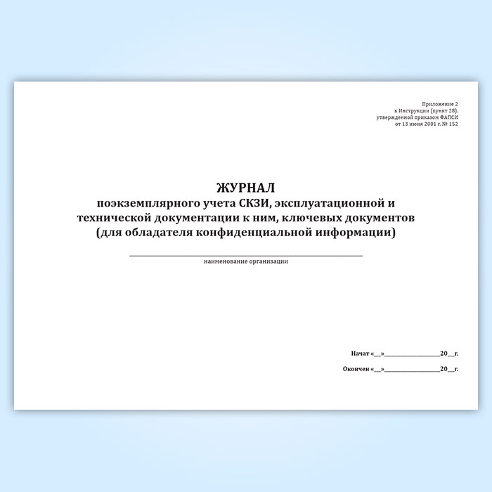Журнал поэкземплярного учета СКЗИ, эксплуатационной и технической документации к ним, ключевых документов (для обладателя конфиденциальной информации) в Магнитогорске купить