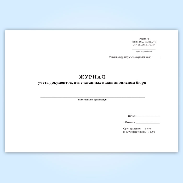 Журнал учета документов, отпечатанных в машинописном бюро (форма 32) в Магнитогорске купить