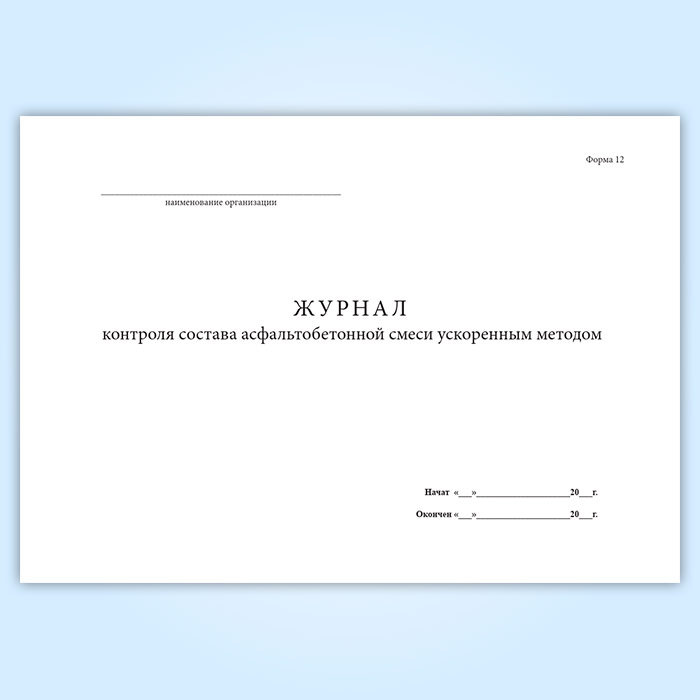 Журнал контроля состава асфальтобетонной смеси ускоренным методом (форма 12) в Магнитогорске купить
