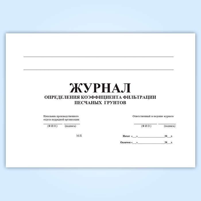 Журнал определения коэффициента фильтрации песчаных грунтов в Магнитогорске купить