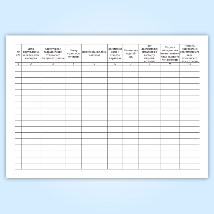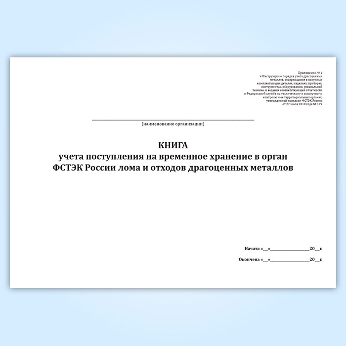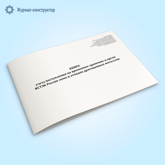 Книга учета поступления на временное хранение в орган ФСТЭК России лома и отходов драгоценных металлов в Магнитогорске купить