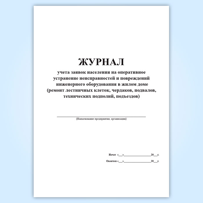Журнал учета заявок населения на оперативное устранение неисправностей и повреждений инженерного оборудования в жилом доме ремонт лестничных клеток, чердаков, подвалов, технических подполий, подъездов в Магнитогорске купить