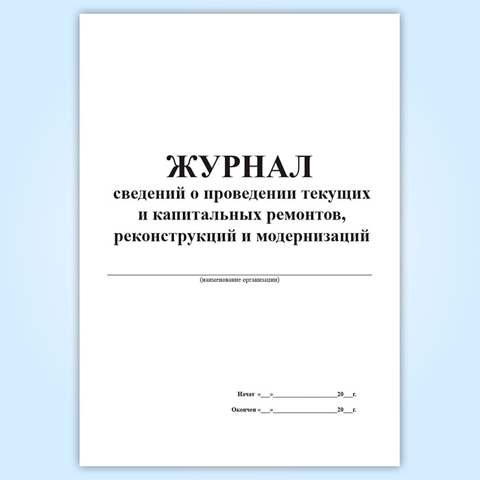 Журнал сведений о проведении текущих и капитальных ремонтов, реконструкций и модернизаций в Магнитогорске купить