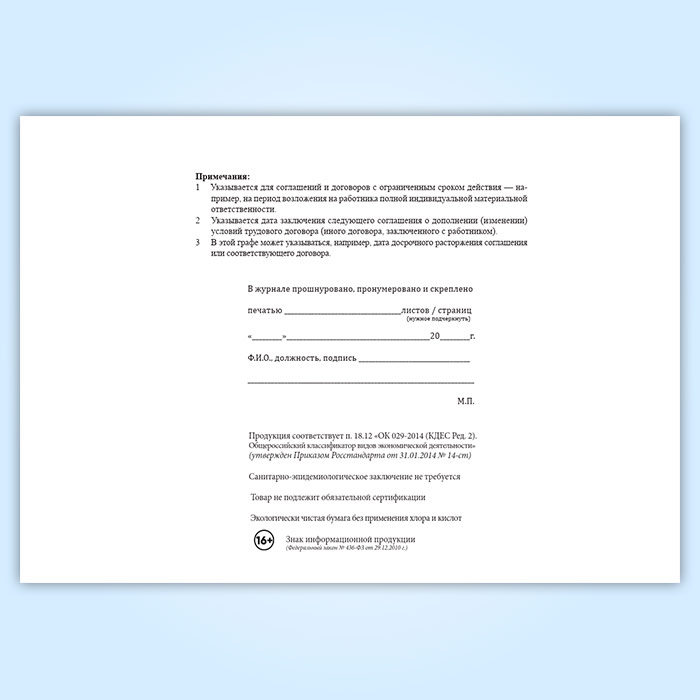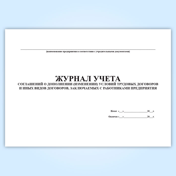 Журнал учета соглашений о дополнении (изменении) условий трудовых договоров и иных видов договоров, заключаемых с работниками предприятия в Магнитогорске купить