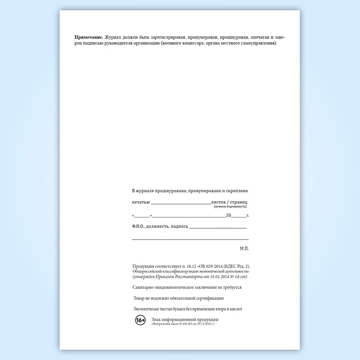 Вы получаете печатную продукцию прошнурованной и c местом для вашей печати в соответствии с действующими нормативными документами: