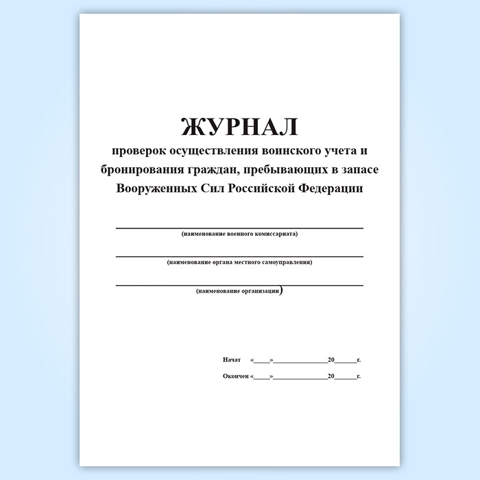 Журнал проверок осуществления воинского учета и бронирования граждан, пребывающих в запасе Вооруженных Сил Российской Федерации в Магнитогорске купить