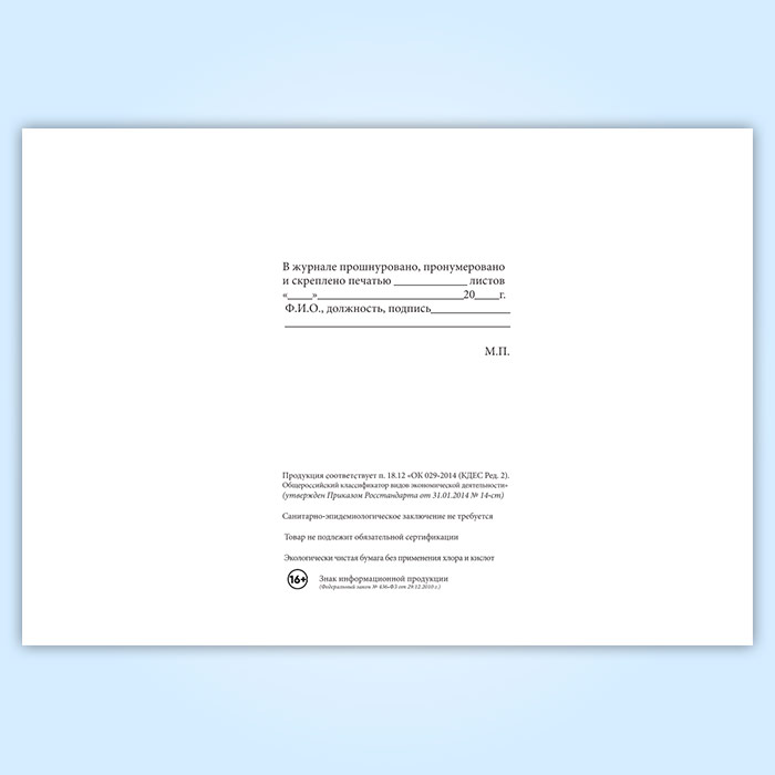 Вы получаете печатную продукцию прошнурованной и c местом для вашей печати в соответствии с действующими нормативными документами: