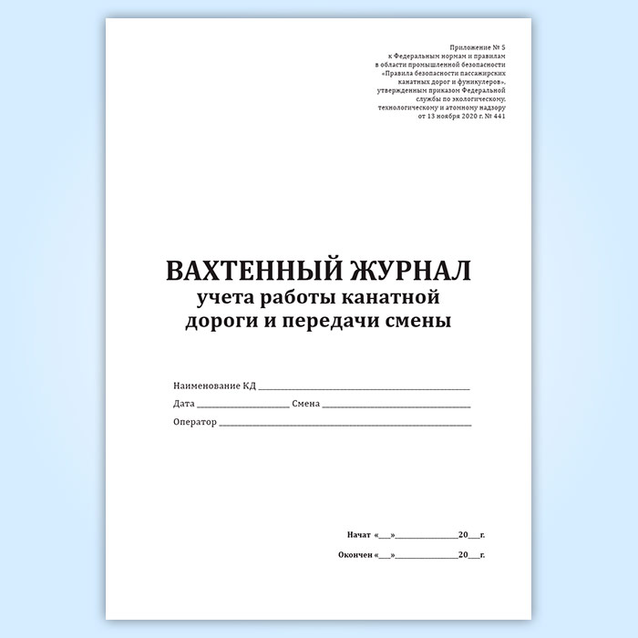 Вахтенный журнал учета работы канатной дороги и передачи смены в Магнитогорске купить