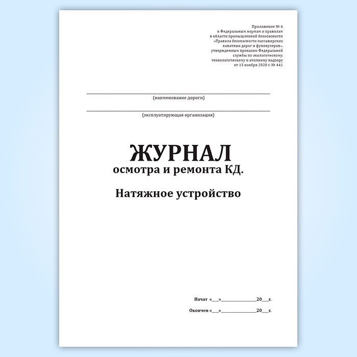 Журнал осмотра и ремонта канатной дороги. Натяжное устройство (форма № 5) в Магнитогорске купить