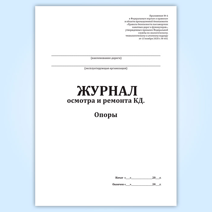Журнал осмотра и ремонта канатной дороги. Опоры (форма № 6) в Магнитогорске купить