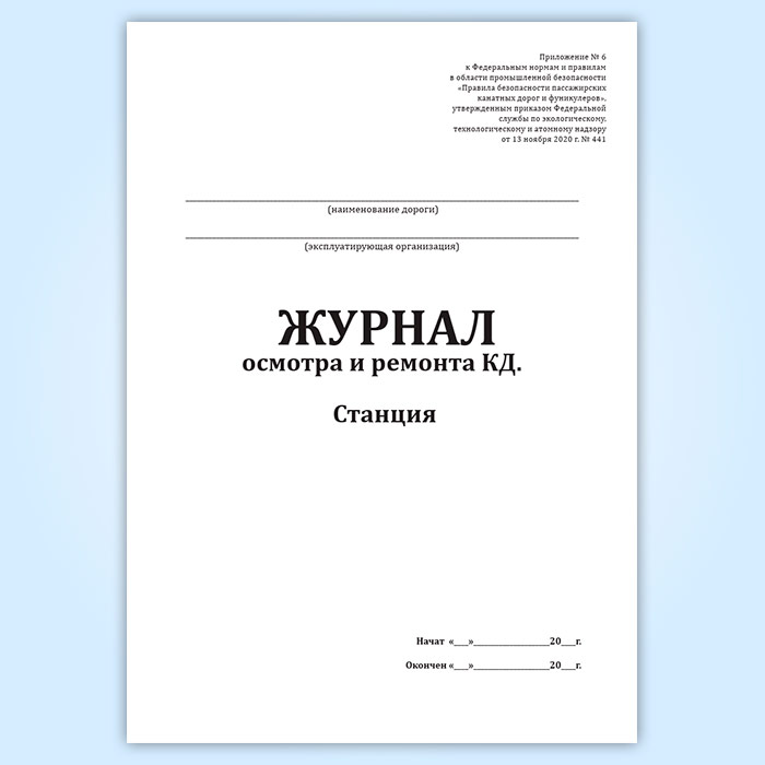 Журнал осмотра и ремонта канатной дороги. Станция (форма № 7) в Магнитогорске купить