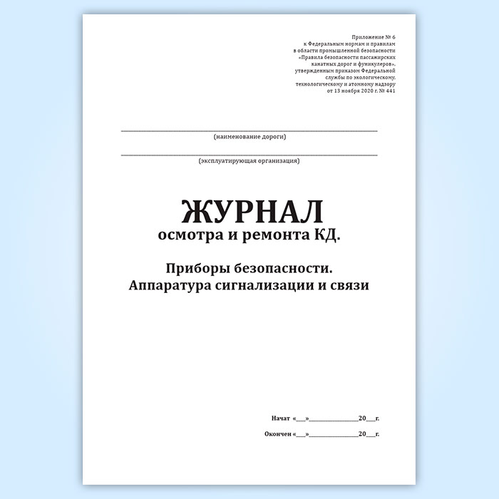 Журнал осмотра и ремонта канатной дороги. Приборы безопасности. Аппаратура сигнализации и связи (форма № 9) в Магнитогорске купить