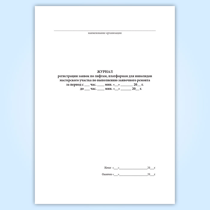 Журнал регистрации заявок по лифтам, платформам для инвалидов мастерского участка по выполнению заявочного ремонта в Магнитогорске купить