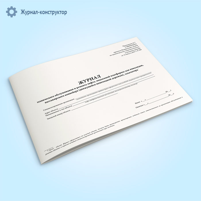 Журнал технического обслуживания и ремонта лифта, подъемной платформы для инвалидов, пассажирского конвейера (движущейся пешеходной дорожки), эскалатора в Магнитогорске купить