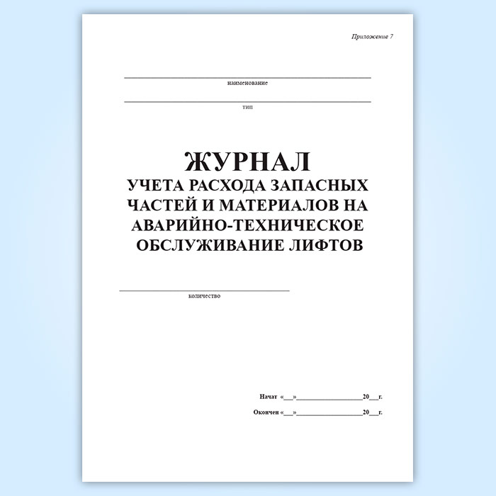 Журнал учета расхода запасных частей и материалов на аварийно-техническое обслуживание лифтов в Магнитогорске купить