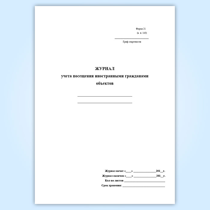 Журнал учета посещения иностранными гражданами объектов (форма 21) в Магнитогорске купить