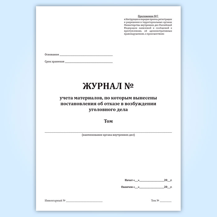 Журнал учета материалов, по которым вынесены постановления об отказе в возбуждении уголовного дела в Магнитогорске купить