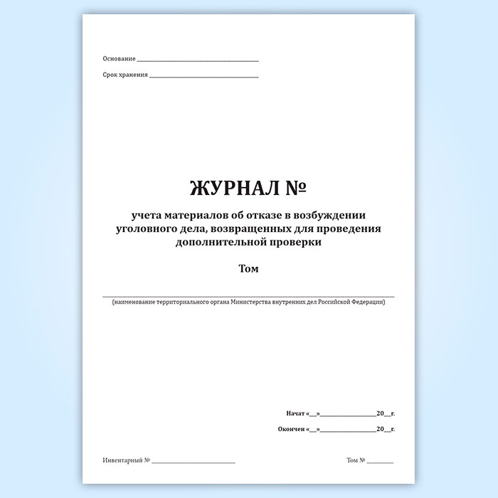 Журнал учета материалов об отказе в возбуждении уголовного дела, возвращенных для проведения дополнительной проверки в Магнитогорске купить