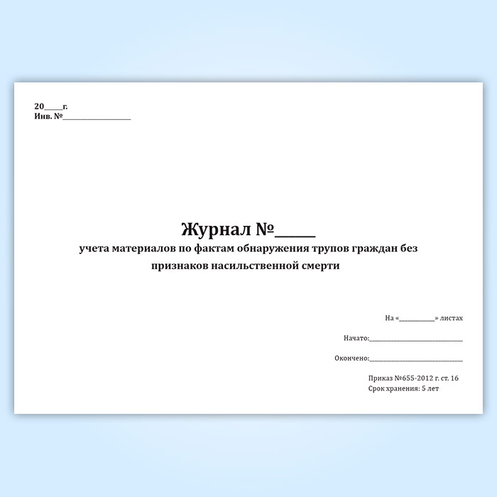 Журнал учета материалов по фактам обнаружения трупов граждан без признаков насильственной смерти в Магнитогорске купить