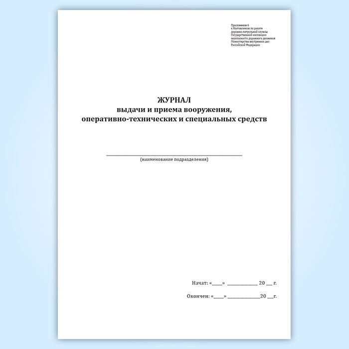 Журнал выдачи и приема вооружения, оперативно-технических и специальных средств в Магнитогорске купить