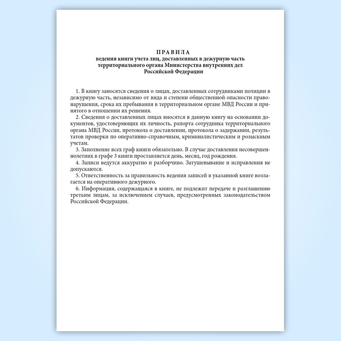 Книга учета лиц, доставленных в дежурную часть территориального органа МВД РФ в Магнитогорске купить