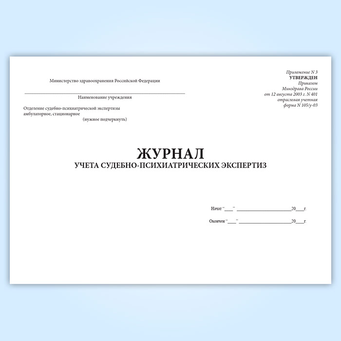 Журнал учета судебно-психиатрических экспертиз (форма 105/у-03) в Магнитогорске купить