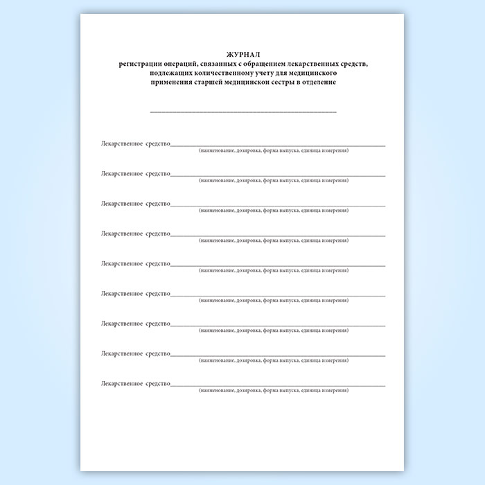 Журнал регистрации операций, связанных с обращением лекарственных средств, подлежащих количественному учету для медицинского применения старшей медицинской сестры в отделение в Магнитогорске купить