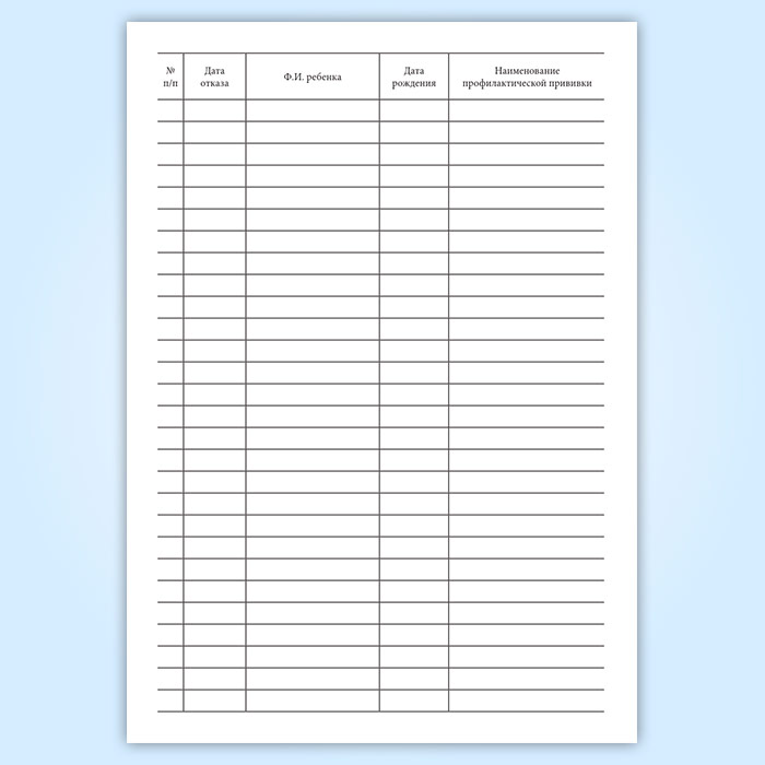Журнал регистрации отказов от профилактических прививок в Магнитогорске купить