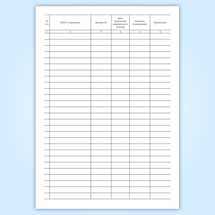 Журнал регистрации результатов медицинских осмотров и иммунизации сотрудников в Магнитогорске купить