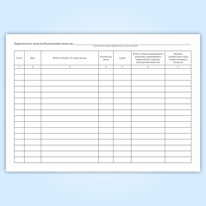 Журнал регистрации операций, связанных с оборотом наркотических средств и психотропных веществ, старшего по бригаде медицинского работника в Магнитогорске купить