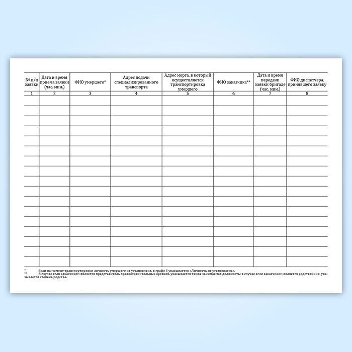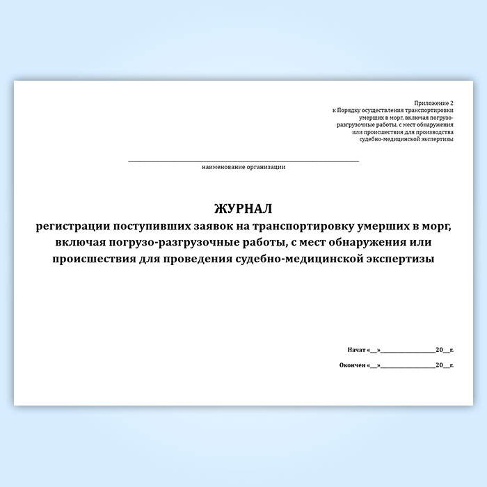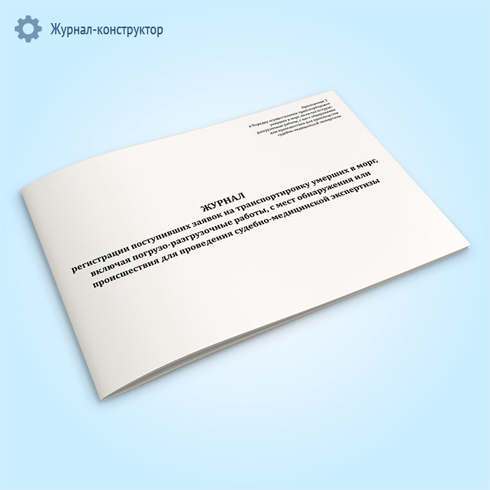 Журнал регистрации поступивших заявок на транспортировку умерших в морг, включая погрузо-разгрузочные работы, с мест обнаружения или происшествия для проведения судебно-медицинской экспертизы в Магнитогорске купить