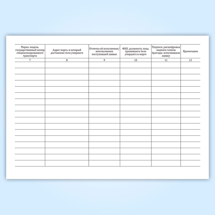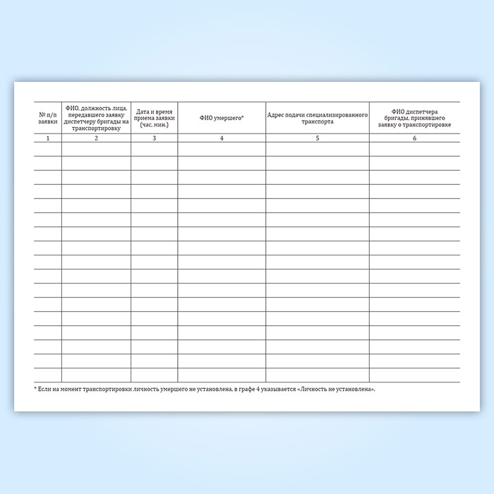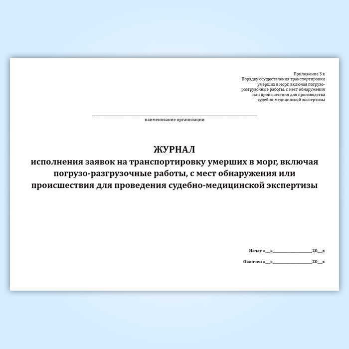 Журнал исполнения заявок на транспортировку умерших в морг, включая погрузо-разгрузочные работы, с мест обнаружения или происшествия для проведения судебно-медицинской экспертизы в Магнитогорске купить