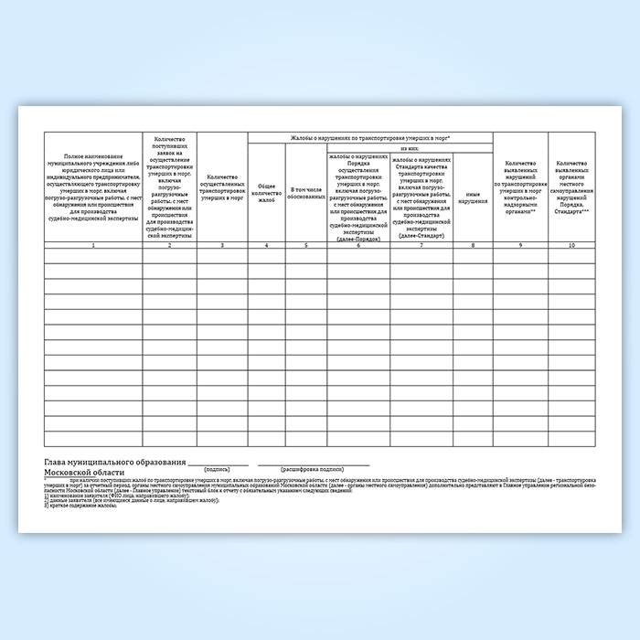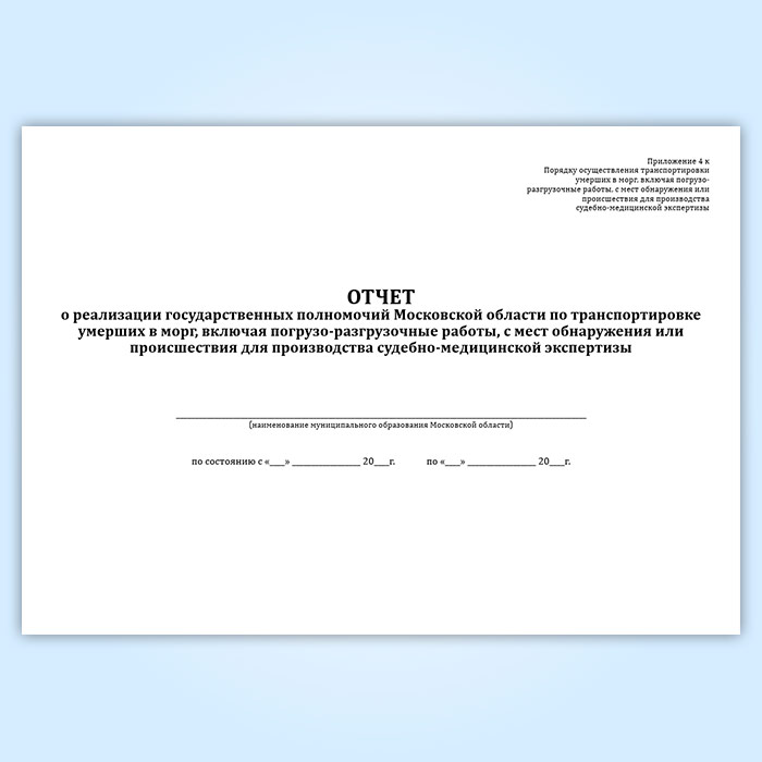 Отчет о реализации государственных полномочий Московской области по транспортировке умерших в морг, включая погрузо-разгрузочные работы, с мест обнаружения или происшествия для производства судебно-медицинской экспертизы в Магнитогорске купить