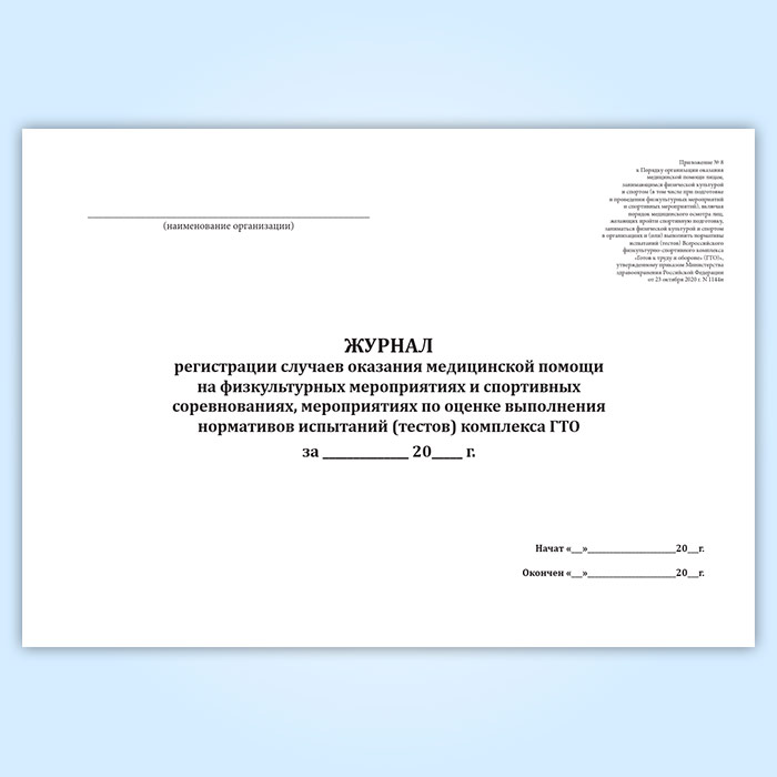Журнал регистрации случаев оказания медицинской помощи на физкультурных мероприятиях и спортивных соревнованиях, мероприятиях по оценке выполнения нормативов испытаний (тестов) комплекса ГТО в Магнитогорске купить