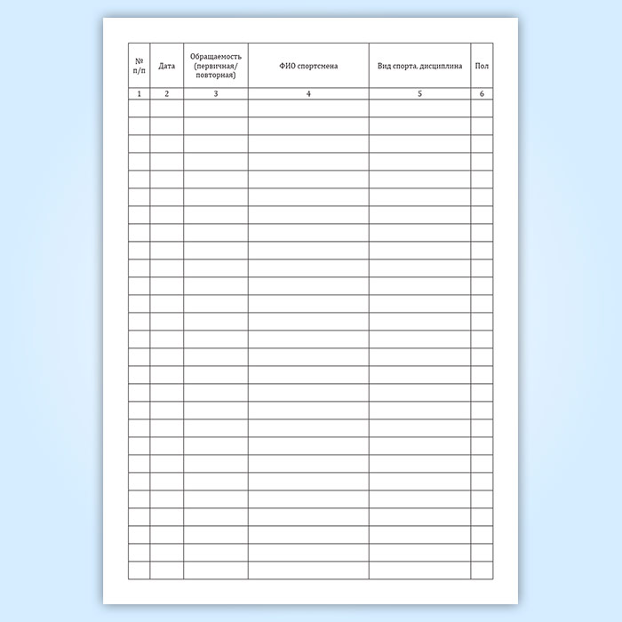 Журнал регистрации медицинской помощи, оказываемой при проведении тренировочных мероприятий и других мероприятий по подготовке к спортивным соревнованиям с участием спортсменов в Магнитогорске купить