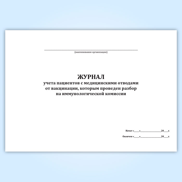 Журнал учета пациентов с медицинскими отводами от вакцинации, которым проведен разбор на иммунологической комиссии в Магнитогорске купить