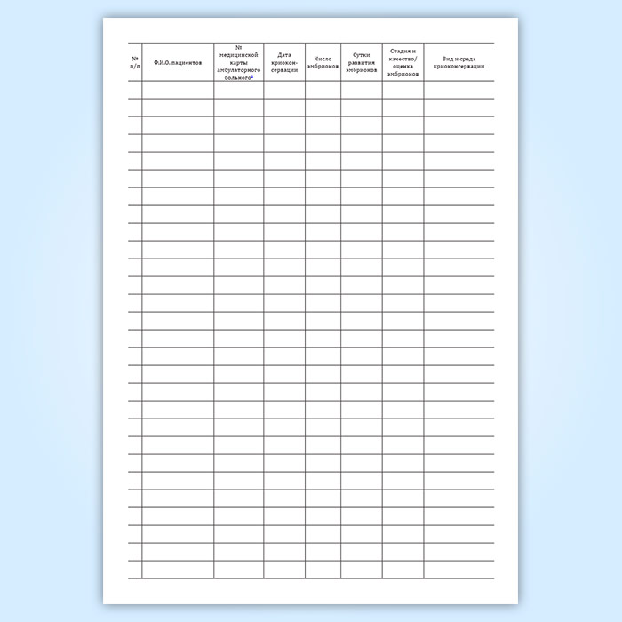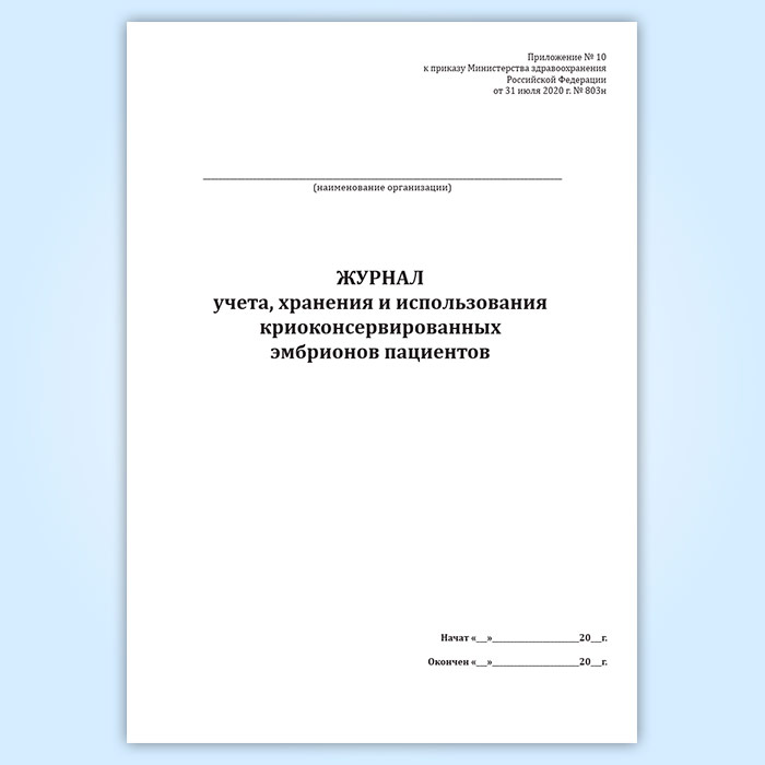 Журнал учета, хранения и использования криоконсервированных эмбрионов пациентов в Магнитогорске купить