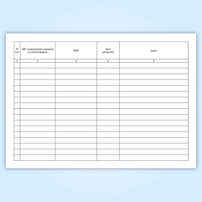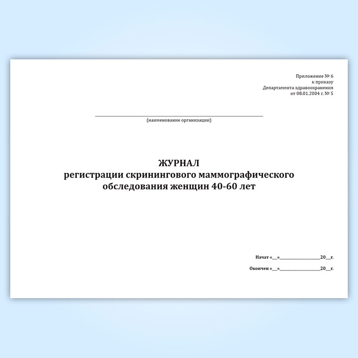 Журнал регистрации скринингового маммографического обследования женщин 40-60 лет в Магнитогорске купить