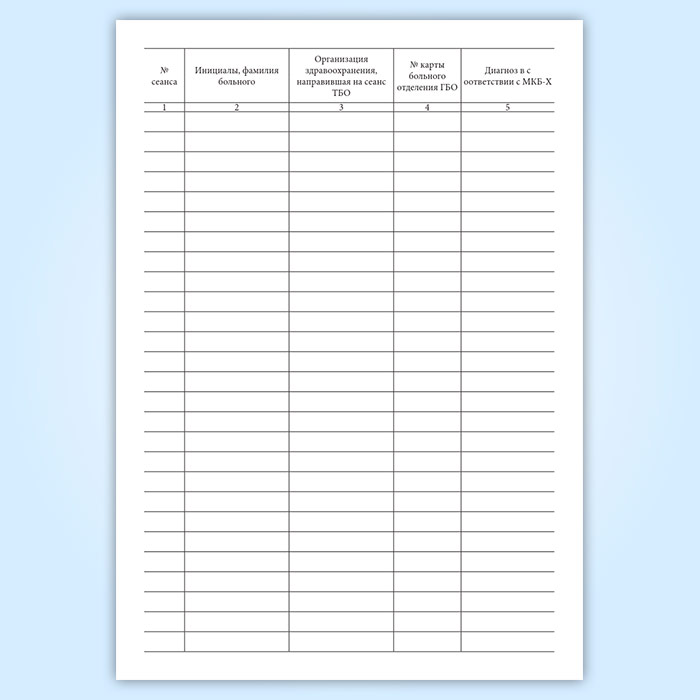 Журнал регистрации сеансов гипербарической оксигенации (ГБО) (форма 2-гбо/у-06) в Магнитогорске купить