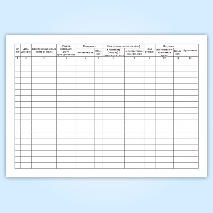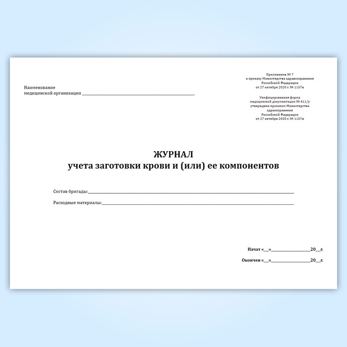 Журнал учета заготовки крови и (или) ее компонентов (форма № 411/у) в Магнитогорске купить