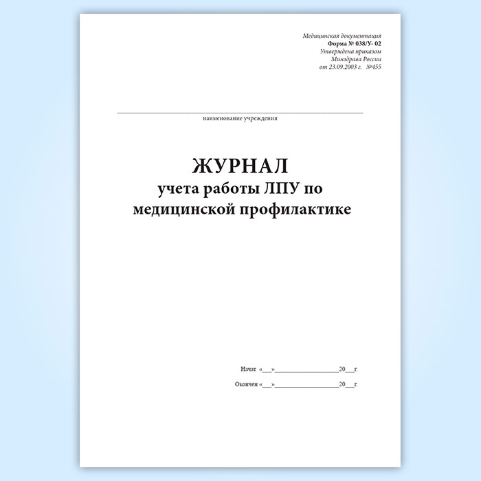 Журнал учета работы ЛПУ по медицинской профилактике (форма 038у-02) в Магнитогорске купить