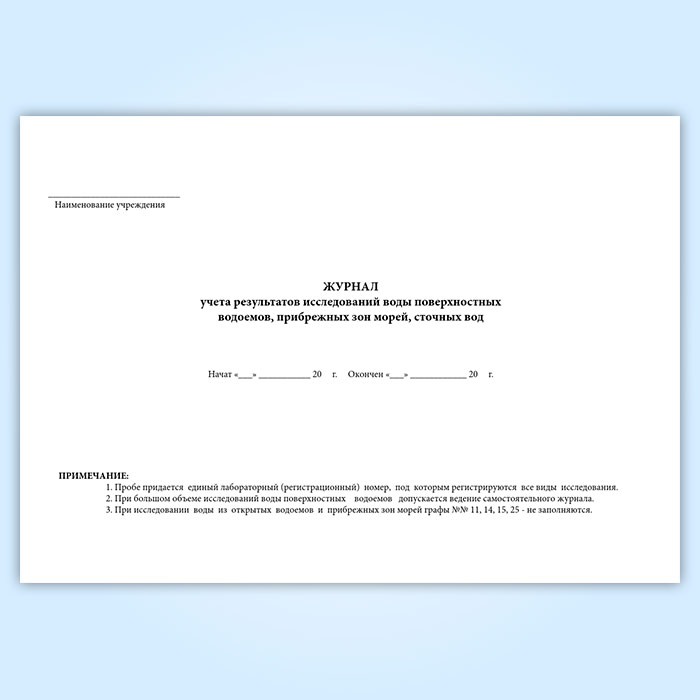 Журнал учета результатов исследований воды поверхностных водоемов, прибрежных зон морей, сточных вод (форма № 324-у) в Магнитогорске купить