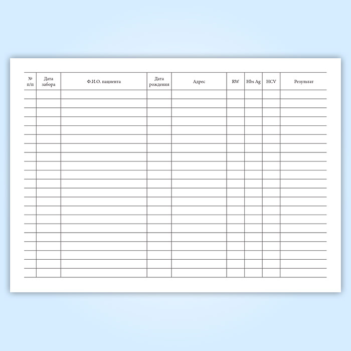 Журнал учета исследований образцов сыворотки на RW, Hbs, Ag, HCV в Магнитогорске купить