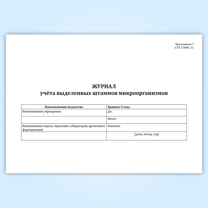 Журнал учета выделенных штаммов микроорганизмов (СанПиН 3.3686-21) в Магнитогорске купить