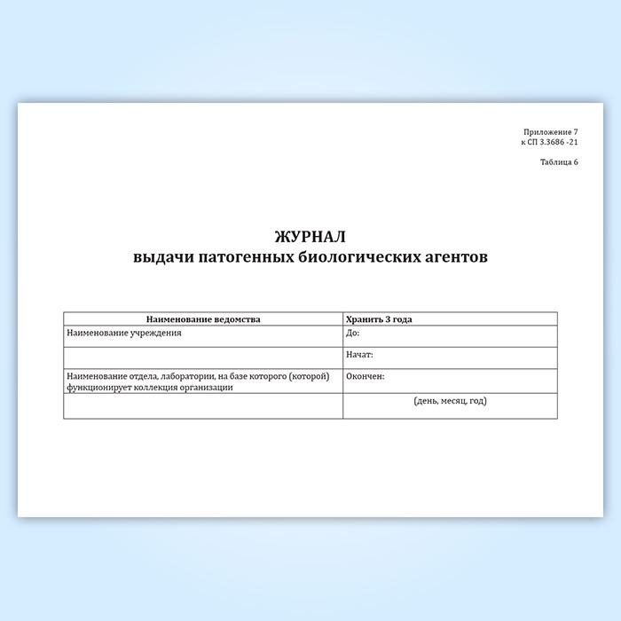 Журнал выдачи патогенных биологических агентов (СанПиН 3.3686-21) в Магнитогорске купить