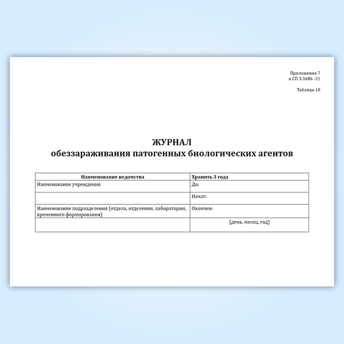 Журнал обеззараживания патогенных биологических агентов (СанПиН 3.3686-21) в Магнитогорске купить