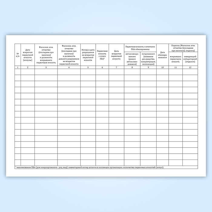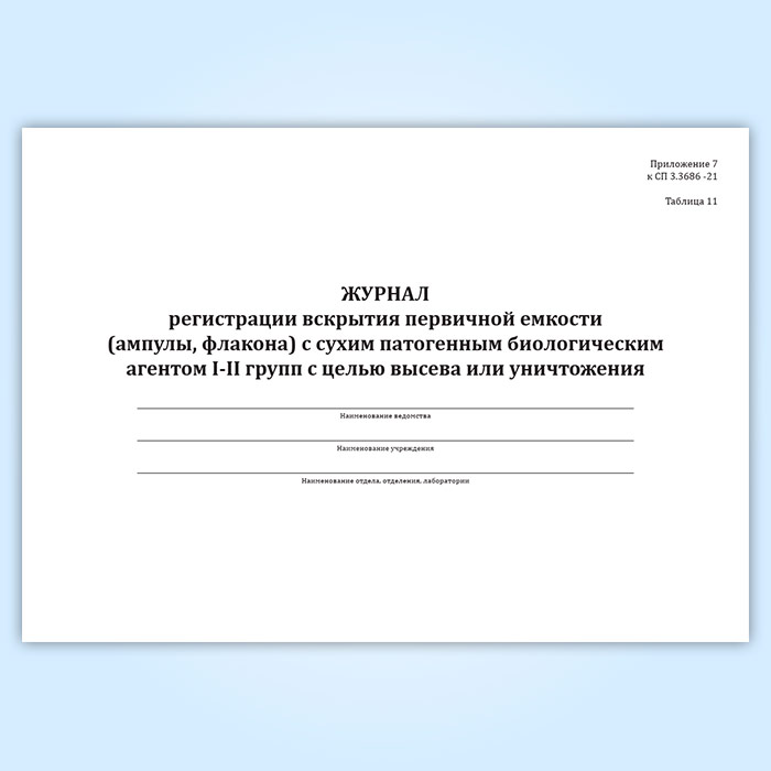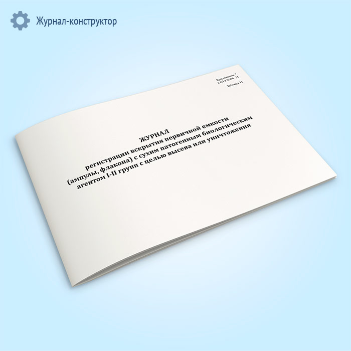Журнал регистрации вскрытия первичной емкости (ампулы, флакона) с сухим патогенным биологическим агентов I-II групп с целью высева или уничтожения в Магнитогорске купить