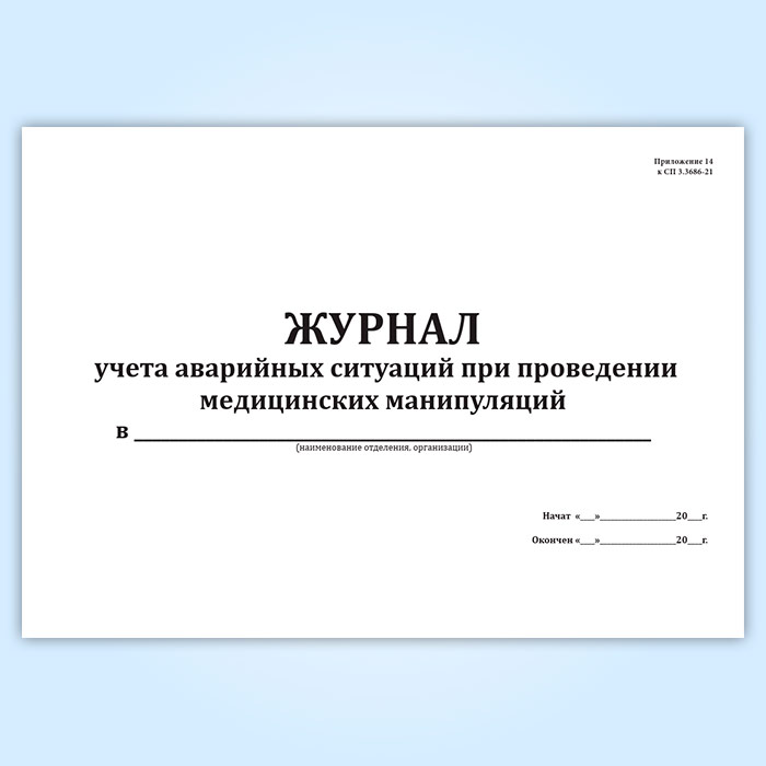 Журнал учета аварийных ситуаций при проведении медицинских манипуляций (СанПиН 3.3686-21) в Магнитогорске купить